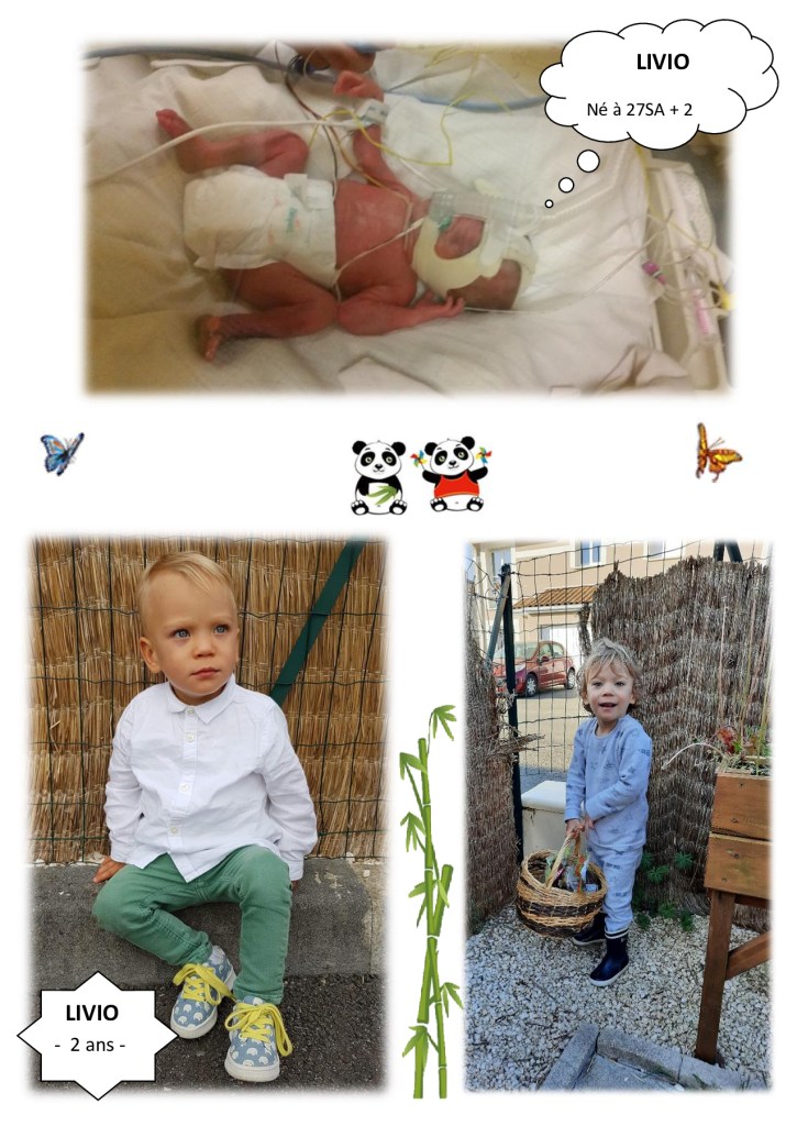 Maintenant (26 mois), tout ce passe bien. Nous sommes très heureux, sereins et nous profitons de la vie. Cela a été une épreuve qui ne s’est pas terminée une fois sortie de l’hôpital. Le couple aussi est fragilisé car toute l’attention est pour notre enfant. Pour me reconstruire et pour dépasser mes angoisses (confier Livio, lâcher prise), j’ai demandé un suivi psychologique. Plus Livio grandit moins il est fragile, donc notre famille retrouve un équilibre. Ce qui nous reste de cette expérience est l’énorme chance que l’on a d’avoir notre fils à nos côtés et en bonne santé. Je suis fière du courage de mon enfant et je suis fière de mon conjoint qui est un papa formidable.